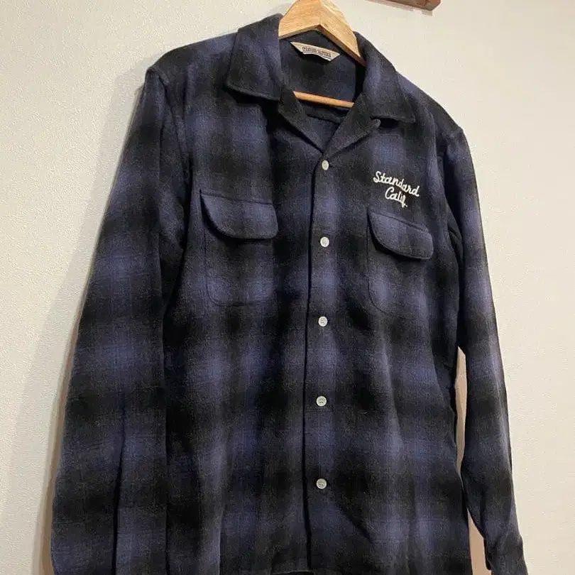 50s 60s 복각 체크 셔츠 오픈 카라 아이보리 블랙 플랩 포함