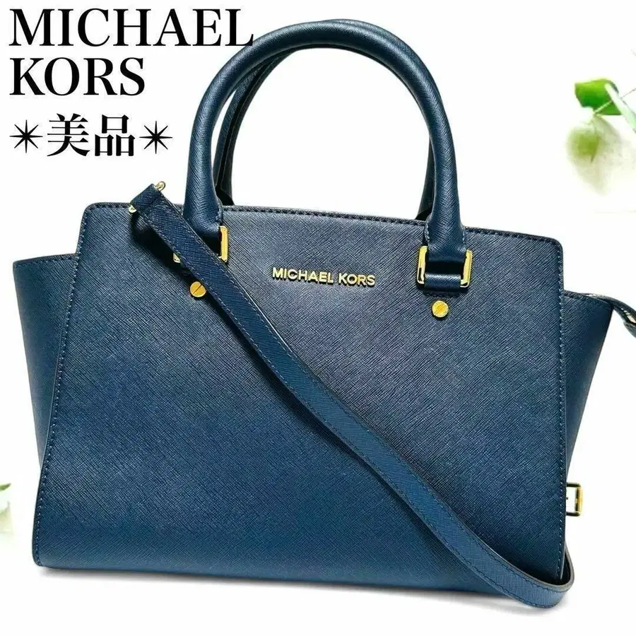 새상품급 마이클코어스 2way 숄더백 사피아노 가죽 다크 네이비