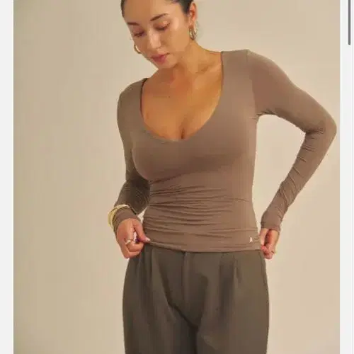 INDIVI [그레이] 드레이프 넥 티셔츠