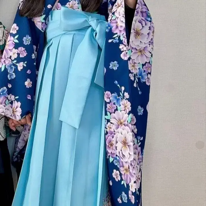 어린이용 하카마 스타일 기모노 네이비 컬러 스카이블루 꽃무늬