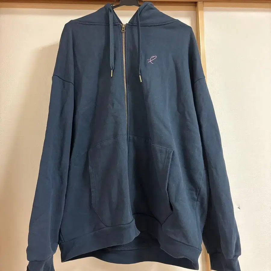 다크 블루 풀 집업 후드티, 하트 자수와 백 프린트 포함. - 색상: 다크 블루 - 로고: 하트 자수 - 디자인: 백 프린트 있음 (실루엣과 날짜) - 스타일: 풀 집업 후드티 - 포켓: 프론트 포켓 부착 방문해 주셔서 감사합니다.