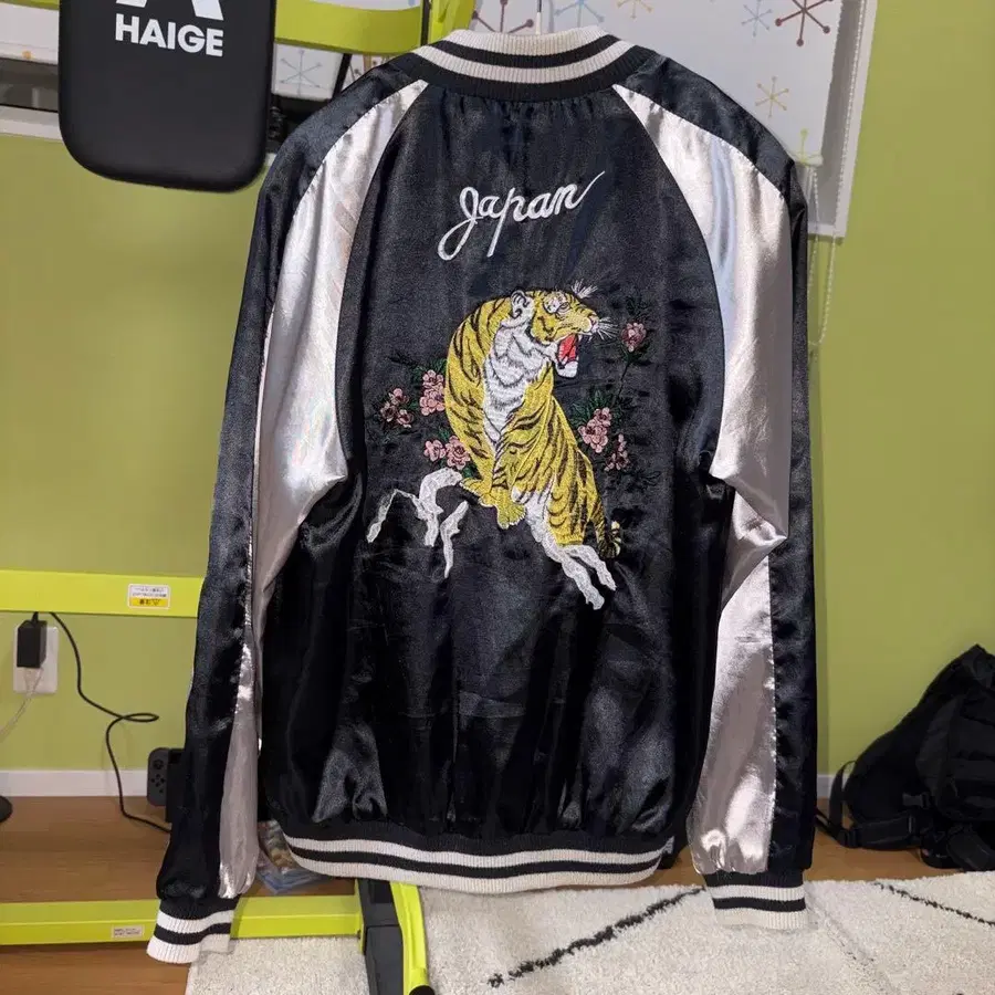 호랑이 자수가 놓인 새틴 소재의 스카잔, M 사이즈.