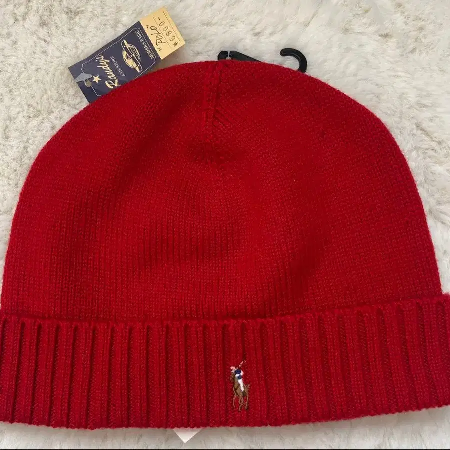 랄프 로렌 빨간색 울 니트 모자 비니
