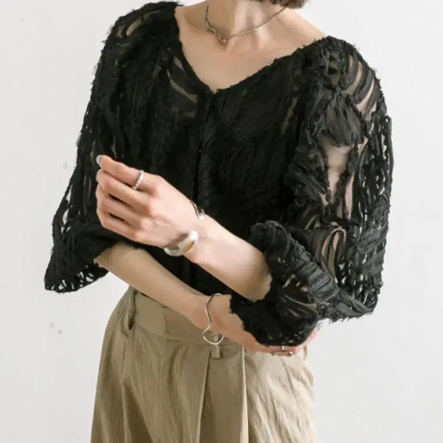 • Anuke 블랙 벨벳 오부 소매 블라우스