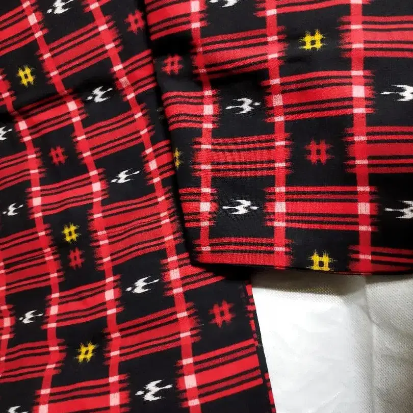 선명한 빨간색과 블랙의 체크 무늬 기모노, 유니크한 디자인이 매력적입니다. - 색상: 빨간색과 블랙의 체크 무늬 - 디자인: 스트라이프와 기하학 패턴의 조합 - 소재: 불명이나 부드러워 보이는 원단 - 특징: 선명한 색감과 유니크한 무늬 미사용품 신경이 예민하신 분은 삼가해 주시기 바랍니다.