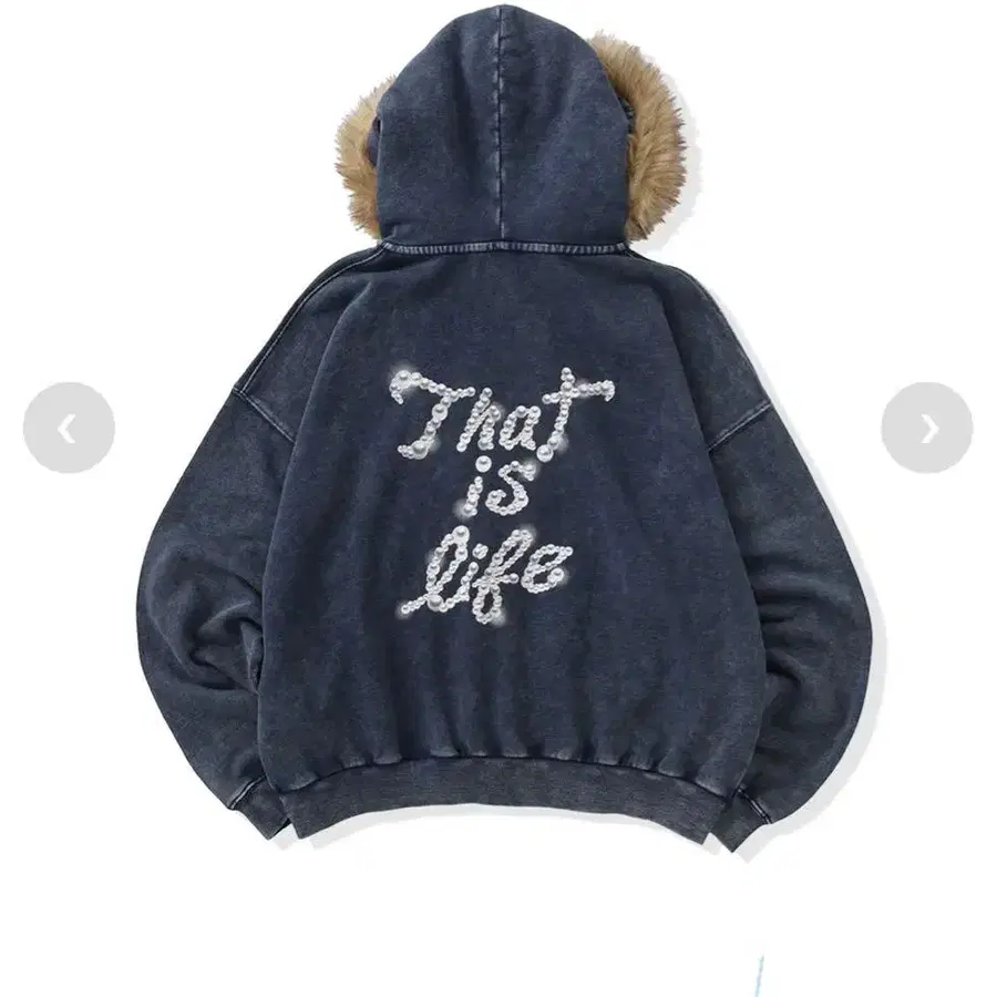 후드에 브라운 퍼가 장식된 다크 블루 집업 후드티. - 디자인: 후드 부착, 퍼 부착 - 색상: 다크 블루 - 텍스트: That is life - 퍼 색상: 브라운 - 스타일: 집업 방문해 주셔서 감사합니다. 사이즈 - M