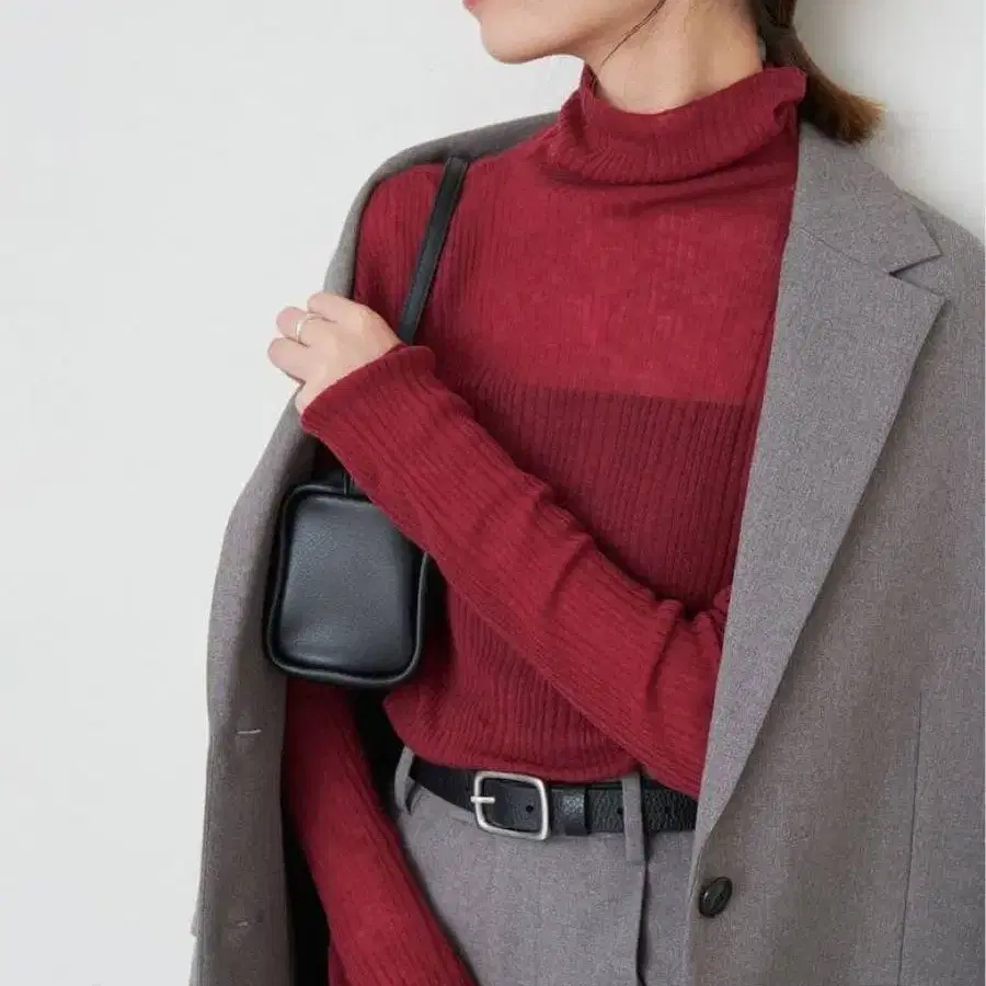 SLOBE IENA (슬로브 이에나) 스이비 울 리브 터틀 2회 착용했습니다. 그대로 입는 것은 물론, 자켓이나 셔츠의 이너로도 추천합니다. 진한 보르도 색상이 귀엽습니다. 평평하게 놓았을 때 실측 (약 cm) 어깨 너비 46.5 | 소매 길이 69 | 가슴 너비 44 | 기장 56 | 옷깃 높이 11 | ● 소재: 울 100%