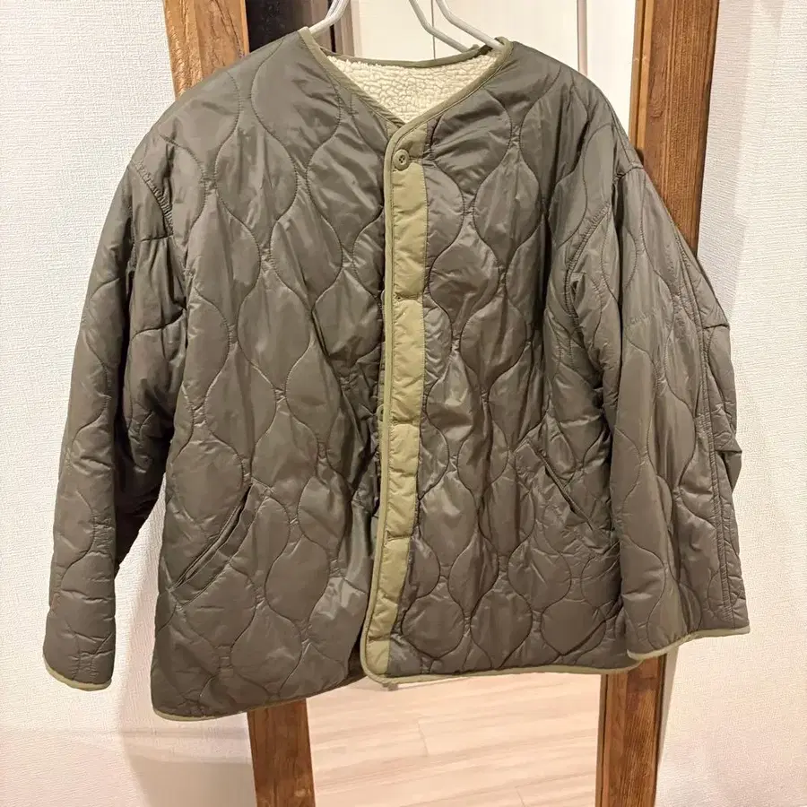 BEAMS HEART, 올리브 색상 퀼팅 자켓, 플리스 소재의 리버서블 디자인. - 색상: 올리브 - 디자인: 퀼팅 - 소재: 플리스 - 버튼: 스냅 버튼 - 스타일: 리버서블 어깨 너비 - 56cm 가슴 너비 - 64cm 소매 길이 - 55cm 기장 - 77cm 방문해 주셔서 감사합니다. 사이즈 - M