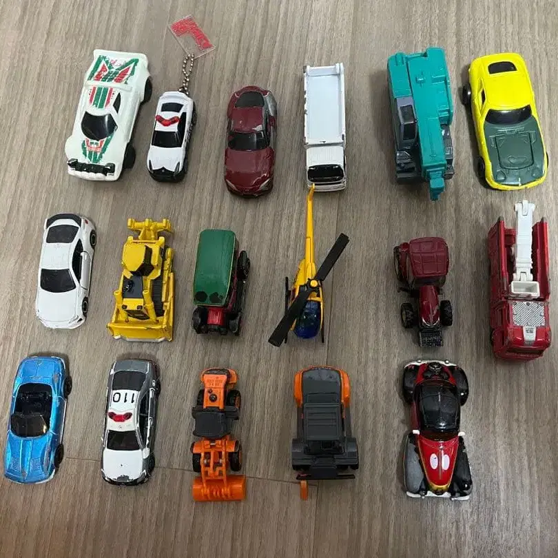 다양한 디자인의 토미카 17대 세트, 차량과 헬리콥터를 포함. - 종류: 토미카 - 색상: 다색 - 수량: 17대 - 특징: 다양한 차량과 헬리콥터를 포함 - 상태: 양호 방문해 주셔서 감사합니다.