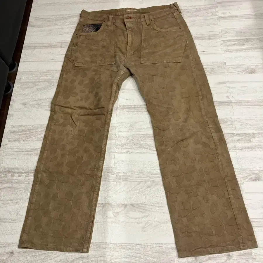엠보싱 가공이 들어간 베이지색 코튼 혼방 팬츠. 자수 디자인의 포켓이 특징입니다. - 색상: 베이지 - 디자인: 엠보싱 가공 - 포켓: 자수 디자인 포켓 - 소재: 코튼 혼방 방문해 주셔서 감사합니다. 사이즈 - L 사이즈 - 2XL(3L) 사이즈 - XL(LL)