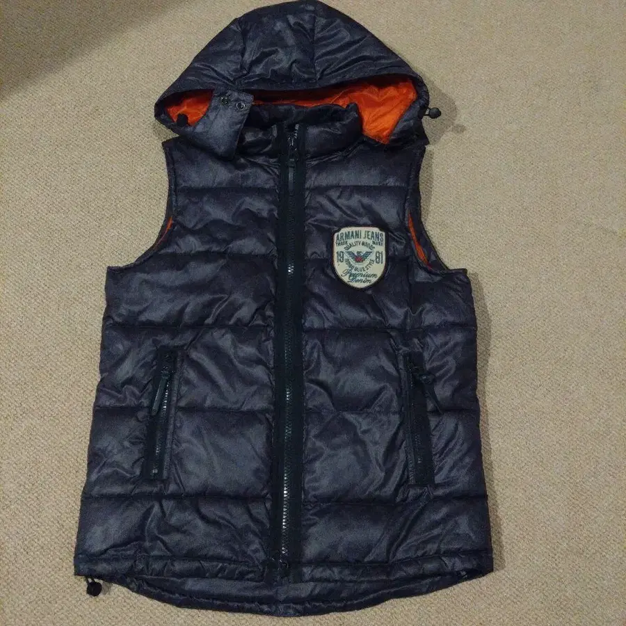 후드 부착 네이비 다운 베스트, 지퍼 포켓과 로고 패치 부착. - 브랜드: Armani Jeans - 색상: 네이비 - 디자인: 후드 부착 다운 베스트 - 패치: 로고 패치 부착 - 포켓: 지퍼 포켓 부착 방문해 주셔서 감사합니다. 아르마니 진스의 다운 베스트입니다. 사이즈는 US xs입니다. 저는 신장 171cm, 70kg으로 저스트 정도로 입었습니다!