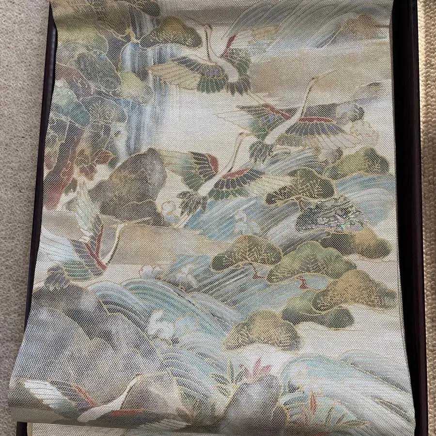 학, 자연을 그린 고급 직물의 후쿠로 오비, 전용 상자와 인증서 포함. - 디자인: 학과 자연 풍경 - 소재: 고급 직물 - 부속품: 전용 상자, 인증서 - 색상: 다색 (파랑, 그린, 은색) - 스타일: 전통적인 일본풍 패턴 방문해 주셔서 감사합니다. 고급 의류점에 근무했던 어머니께 물려받은 것입니다. 결혼식에 한 번 착용했지만, 그 후 기회가 없어 소중히 자택 보관했던 것입니다. 작가님의 단 하나뿐인 작품이라고 들었습니다. 마음에 들어 하시는 분이 계시면 구매 부탁드립니다.