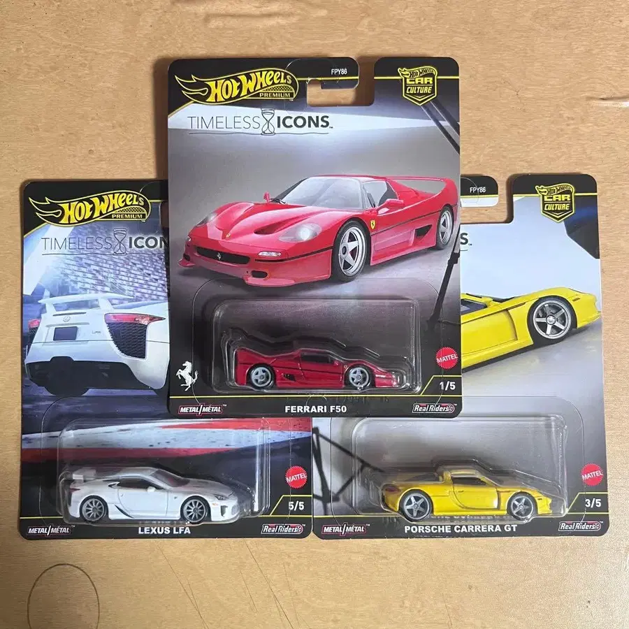 Timeless Icons 시리즈 미니카 3대 세트, Ferrari F50, Lexus LFA, Porsche Carrera GT 포함.
