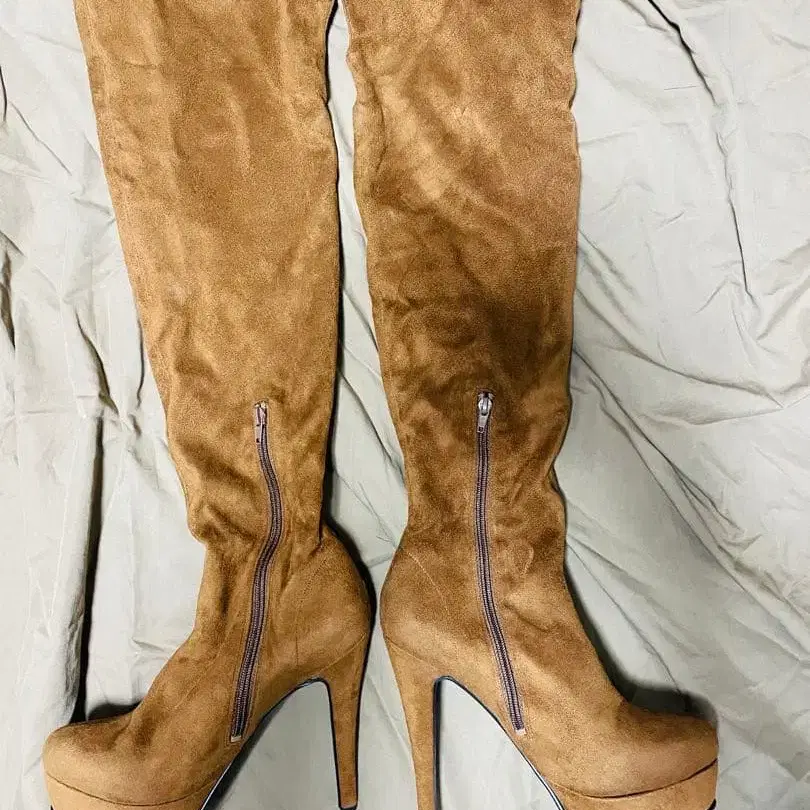 스웨이드 소재의 브라운 니하이 부츠, 하이힐 디자인으로 스타일리시합니다. - 브랜드: ESPELANZA - 색상: 브라운 - 소재: 페이크 스웨이드 - 사이즈: LL - 힐 높이: 약 14cm 방문해 주셔서 감사합니다.