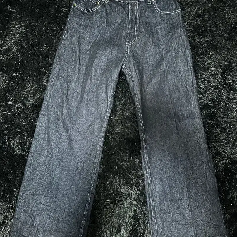 다크 블루 와이드 레그 데님, 백 포켓 포함. - 색상: 다크 블루 - 스타일: 와이드 레그 - 포켓: 백 포켓 있음 - 허리: 지퍼 플라이 방문해 주셔서 감사합니다. 데님 색상 - 블루 얼룩, 찢김, 냄새 등 - 없음