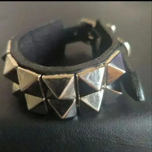 검색)) 가죽 공예, 가죽 세공, HARDCORE PUNK, CRUST, 하드코어 펑크, 크러스트, 펑크, 바이커, 가죽 뱅글, 스터드 뱅글 본인이 핸드메이드로 제작한 피라미드 스터드를 사용한 본 가죽 소재 리스트 밴드입니다. 가죽 색상은 블랙이며, 스터드는 15mm 각도에 산 높이가 있는 것입니다. 폭 30mm. 이미지는 샘플이므로 구매를 희망하시는 분은 댓글로 손목 둘레 사이즈를 알려주세요. 단품 구매 시 가격 인하 협상은 대응하지 않습니다.