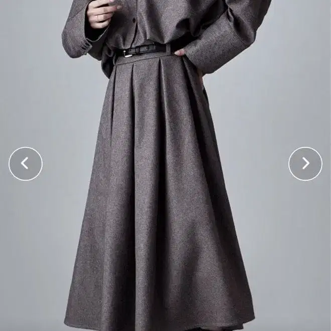 멜란지와 트윌의 소재감이 지적이고 품격 있게, 캐주얼한 상의에도 기품을 더해주는 A라인의 종아리 기장.