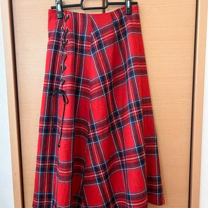 빨간색 체크 무늬의 울풍 플레어 스커트. 허리 32 총길이 75 H39 - 색상: 빨간색 - 디자인: 체크 무늬 - 소재: 울풍 - 스타일: 플레어 스커트 방문해 주셔서 감사합니다. 사이즈 - M