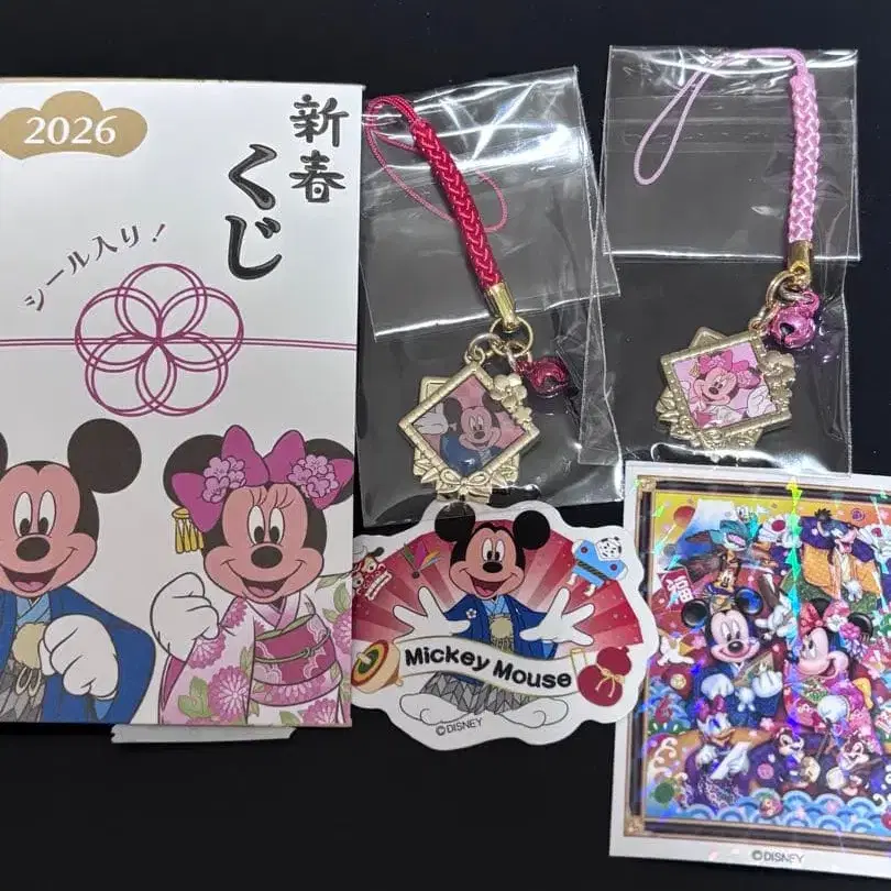 2026년 일본풍 디자인의 미키, 미니 스트랩 세트. 최애 캐릭터가 아니어서 판매합니다. 주의 ⚠️ 외부 가방은 포함되지 않습니다. 미키와 미키의 족자 스트랩, 씰 2점을 포함한 총 4점으로 발송합니다.