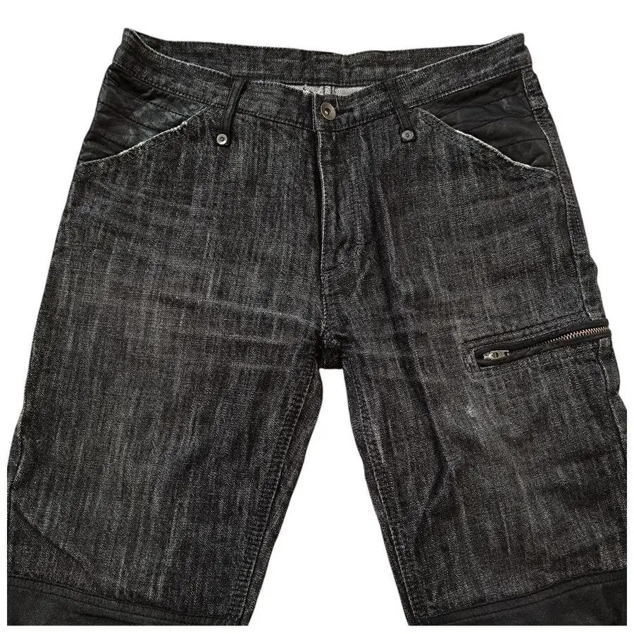 더블니 스키니 데님 블랙 가죽 일본제