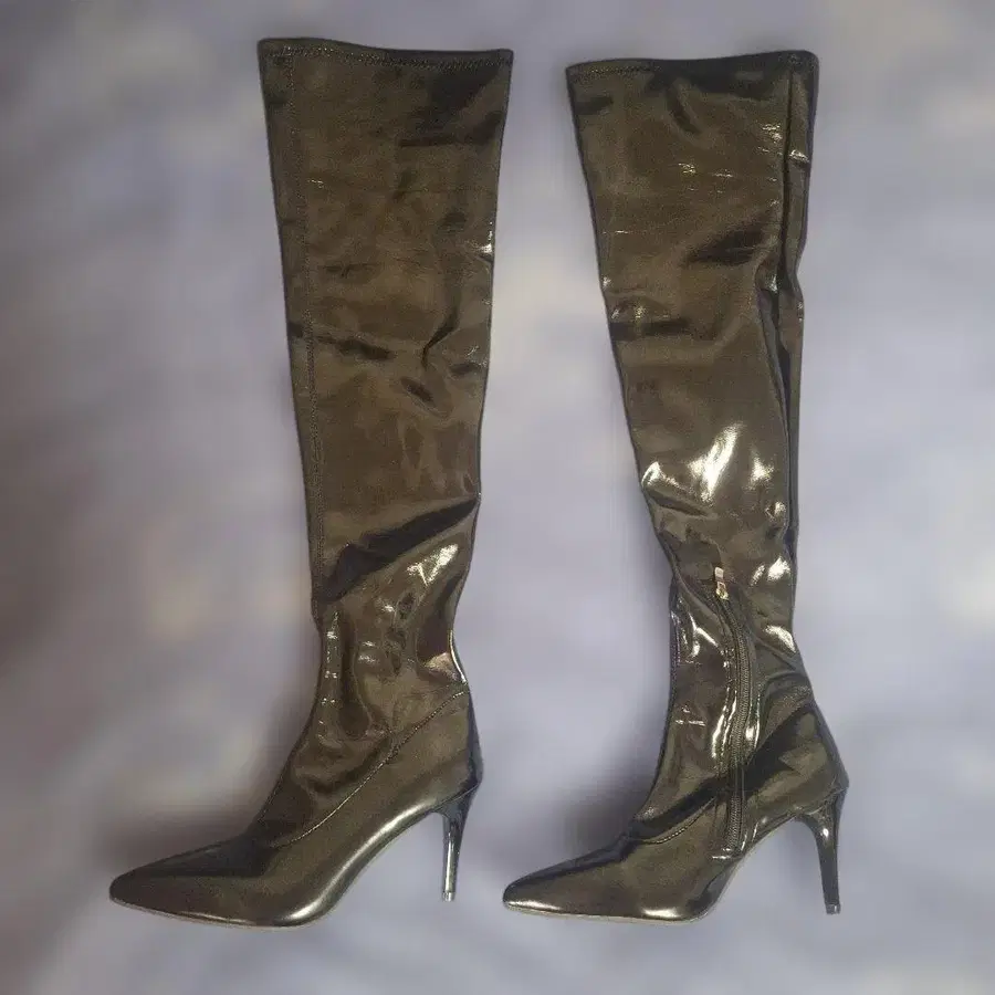 광택이 나는 블랙 니하이 부츠, 높은 힐과 사이드 지퍼 부착. - 색상: 블랙 - 소재: 광택이 나는 합성 피혁 - 스타일: 니하이 부츠 - 힐 높이: 약 8cm - 지퍼: 사이드 지퍼 부착 방문해 주셔서 감사합니다.