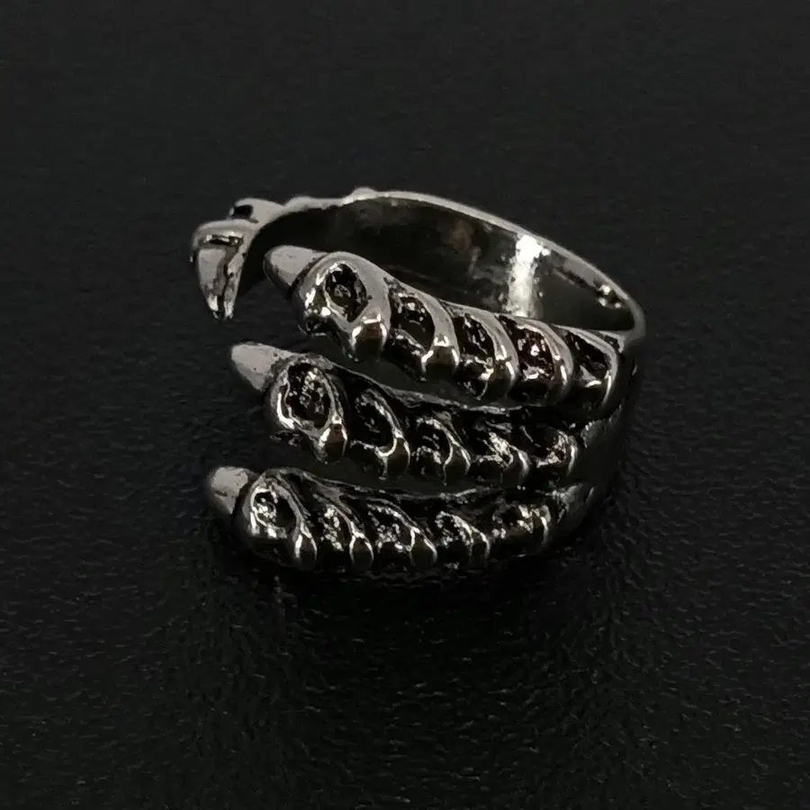 이 반지는 용의 손톱을 모티브로 한 독특한 디자인이 특징입니다. 입체적인 조각이 되어 있어 시각적으로 임팩트가 있습니다.