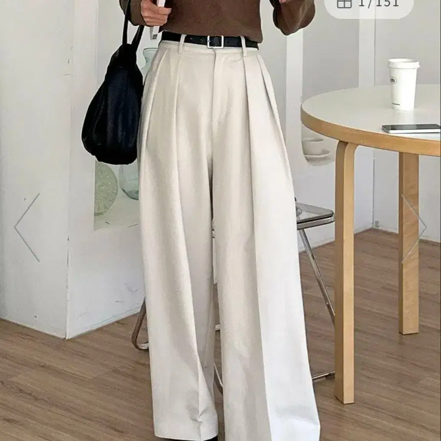 [참 베리 치크] 하이웨스트 와이드 팬츠 슬림 루즈핏 아이보리