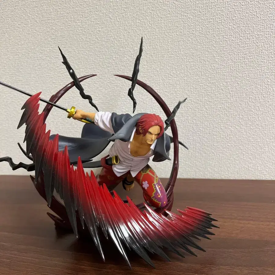 샹크스의 공격 포즈 피규어, 역동적인 이펙트가 특징. - 캐릭터: 샹크스 - 포즈: 공격 포즈 - 색상: 빨간색, 블랙, 화이트 - 소재: 플라스틱 - 특징: 역동적인 이펙트 부품 포함 방문해 주셔서 감사합니다.