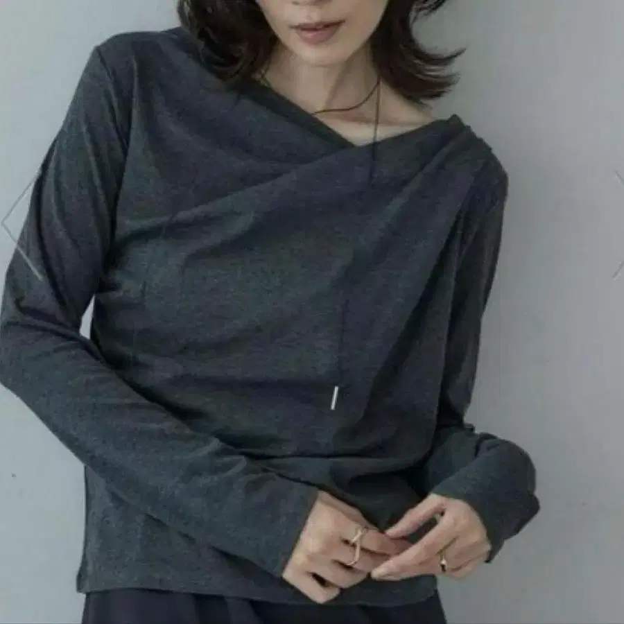 드레이프감이 있는 디자인이 특징인 상의.