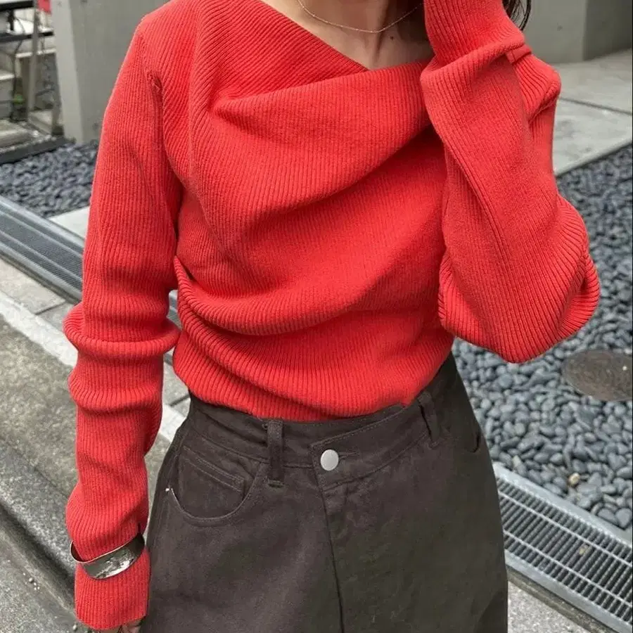 신축성 있는 리브 니트는 바디라인에 적당히 핏됩니다.