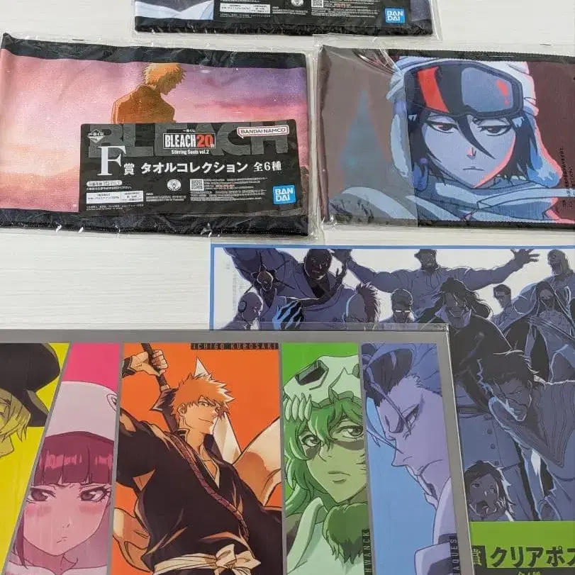 BLEACH 제일복권 타월과 클리어 포스터 쿠로사키 이치고 타월은 BLEACH 20th Stirring Souls vol.2 쿠키 루키아 타월은 천년혈전편 D상 클리어 포스터는 천년혈전편 쿠로사키 이치고 외 4명의 클리어 포스터는 BLEACH 20th Stirring Souls vol.3 자택 보관했습니다. 미개봉 새상품 미사용이지만 신경 쓰이시는 분은 구매를 삼가해 주십시오. 최대한 신속하게 발송하겠습니다!