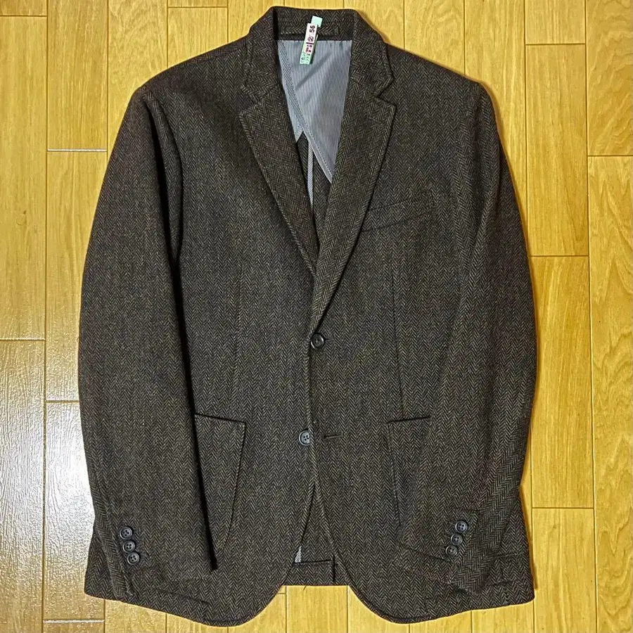 빔즈의 브라운 헤링본 무늬 트위드 소재를 사용한 테일러드 자켓입니다.