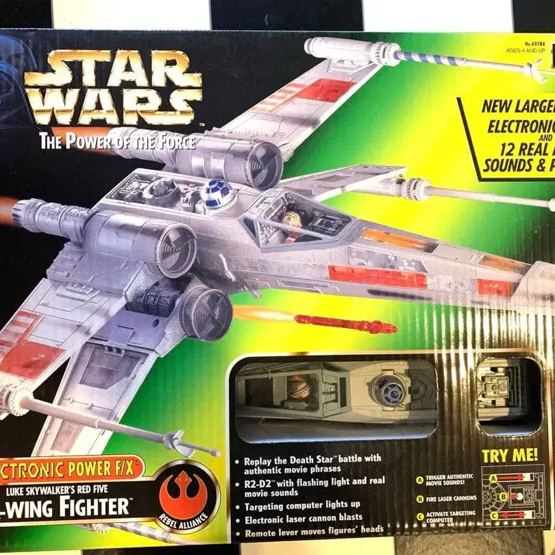 전자 기능이 있는 X-Wing Fighter, 상세한 디자인과 움직이는 부품이 특징입니다.
