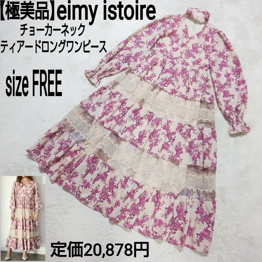 [ 컨디션 최상 ] eimyistoire 에이미 이스트 월 초커 넥 티어드 롱 원피스 레이스 절개 원피스 꽃무늬입니다 ♪