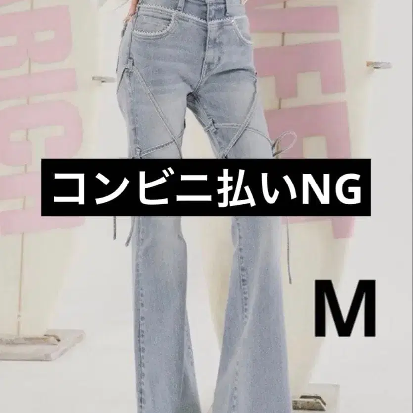 컷 아웃 리본 데님 팬츠