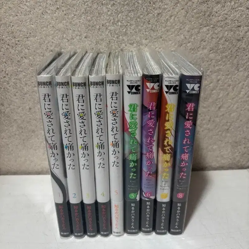 너에게 사랑받아 아팠던 거야 1~8권 + 5권 세트입니다. 구매 후 한 번 읽고 어두운 곳에 보관했습니다. 약간의 빛바램과 스크래치가 보입니다.