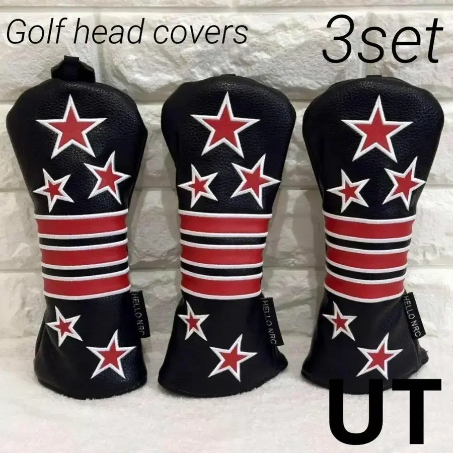 [ UT ] 골프 헤드커버 유틸리티 3세트 별 블랙 라인