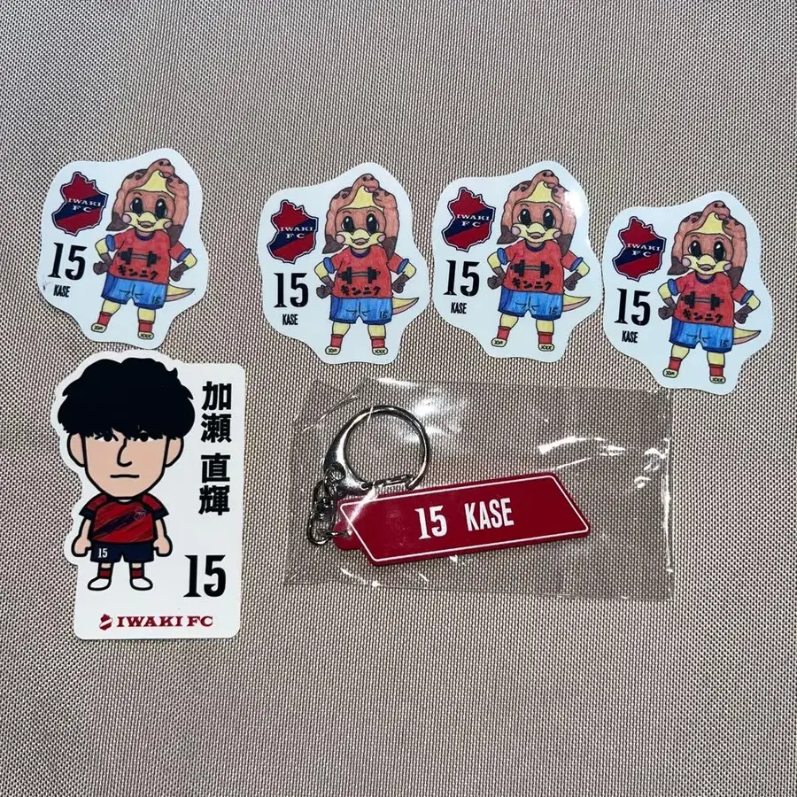 카세 나오키 선수의 15번 키링과 스티커 5장 세트. - 아이템 타입: 키링 - 스티커: 5장 세트 - 선수명: 카세 나오키 - 번호: 15 - 팀명: IWAKI FC 방문해 주셔서 감사합니다.