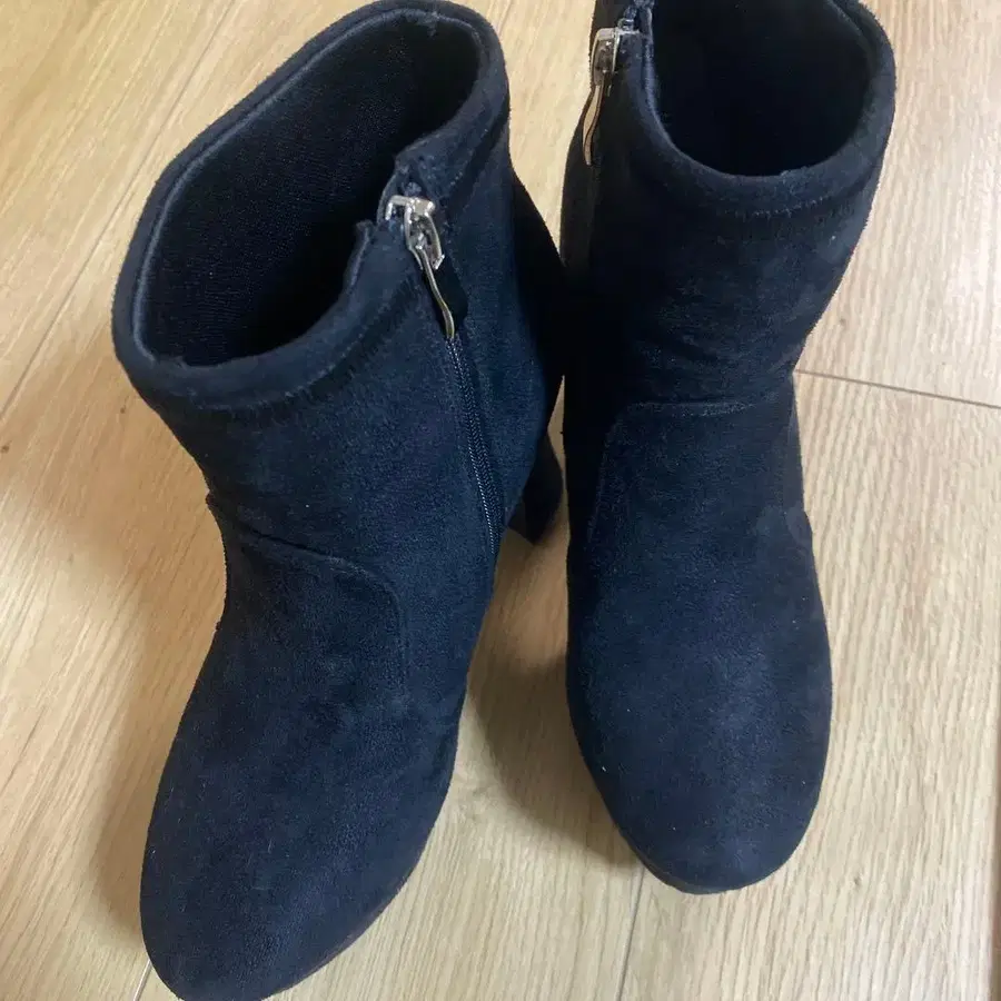스웨이드 소재의 지퍼 달린 블랙 숏부츠, 스타일리시한 중간 힐 디자인. ❉ 색상: 블랙 ❉ 브랜드: Novelist ❉ 소재: 스웨이드 ❉ 굽 높이: 12cm ✻ 저반발 쿠션이 들어 있어 피로감이 적습니다. 방문해 주셔서 감사합니다.