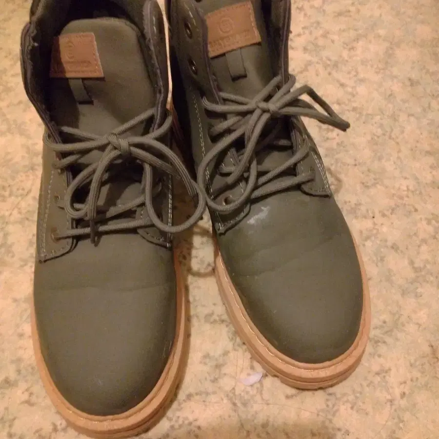 올리브 그린 하이컷 부츠, 합성 피혁 소재로 내구성이 뛰어나고 고무 밑창으로 미끄럼 방지 기능이 있습니다. - 색상: 올리브 그린 - 소재: 합성 피혁 - 밑창: 고무 밑창 - 디자인: 하이컷 - 특징: 레이스업 스타일 방문해 주셔서 감사합니다.