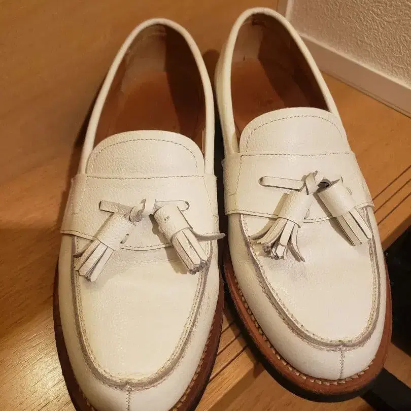 태슬 장식의 화이트 가죽 로퍼, 세련된 디자인이 특징입니다. - 브랜드: 페노메논 x REGAL - 색상: 화이트 - 디자인: 태슬 장식 로퍼 - 소재: 가죽 방문해 주셔서 감사합니다. 미스터 젠틀맨 UNITED ARROWS