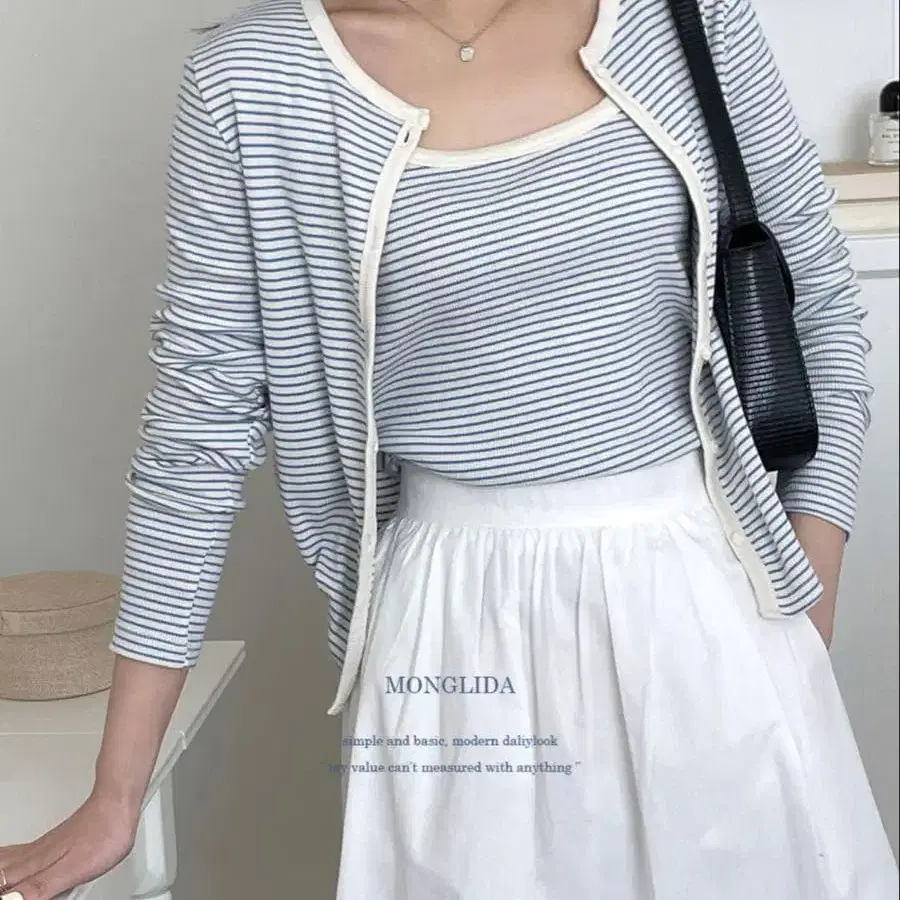완판템 MIESROHE 미에스로에 시어 스트라이프 니트 가디건