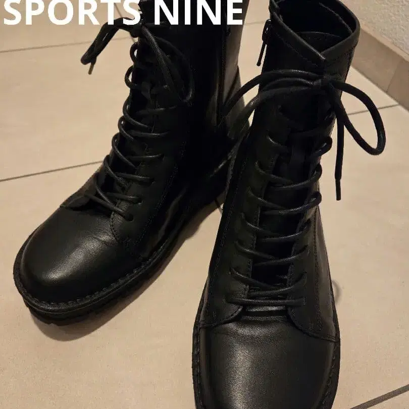 SPORTS NINE 블랙 가죽 레이스업 부츠
