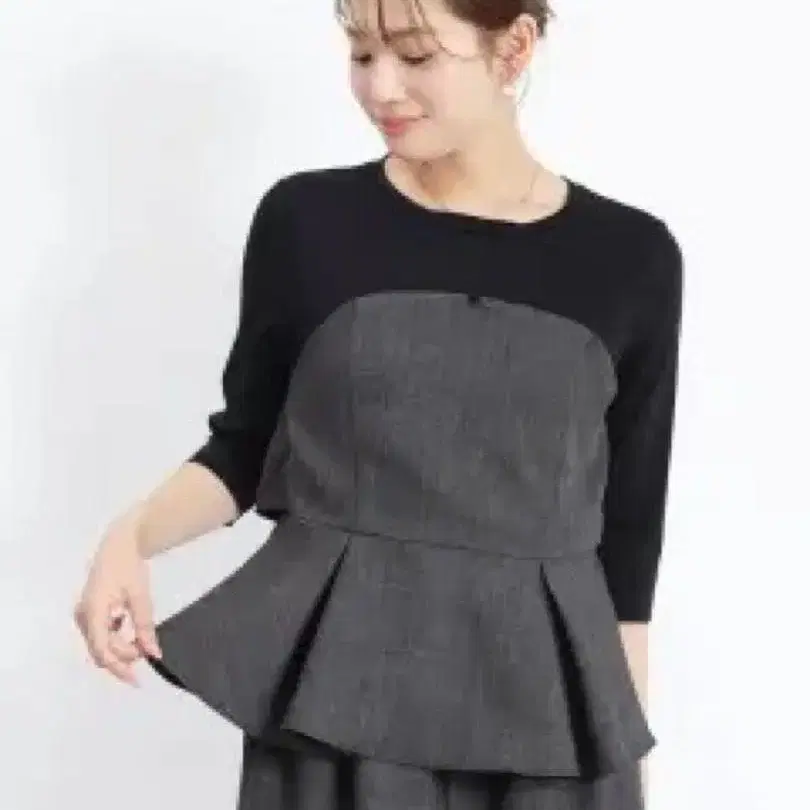 입체감 있는 뷔스티에 절개가 가슴 부분에 자연스러운 악센트를 더해 엘레강트한 분위기로 이끌어줍니다.