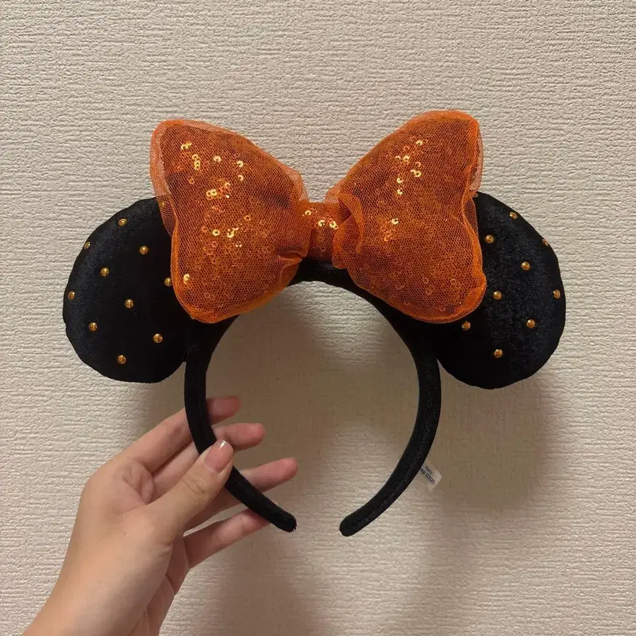 1번만 사용했습니다. 미니 마우스풍의 블랙과 오렌지 색상 머리띠, 스팽글 장식 리본이 특징입니다. - 색상: 블랙과 오렌지 - 디자인: 미니 마우스풍 머리띠 - 장식: 오렌지색 리본과 골드 컬러 스팽글 - 용도: 디즈니랜드 씨(Sea)용 액세서리 방문해 주셔서 감사합니다.