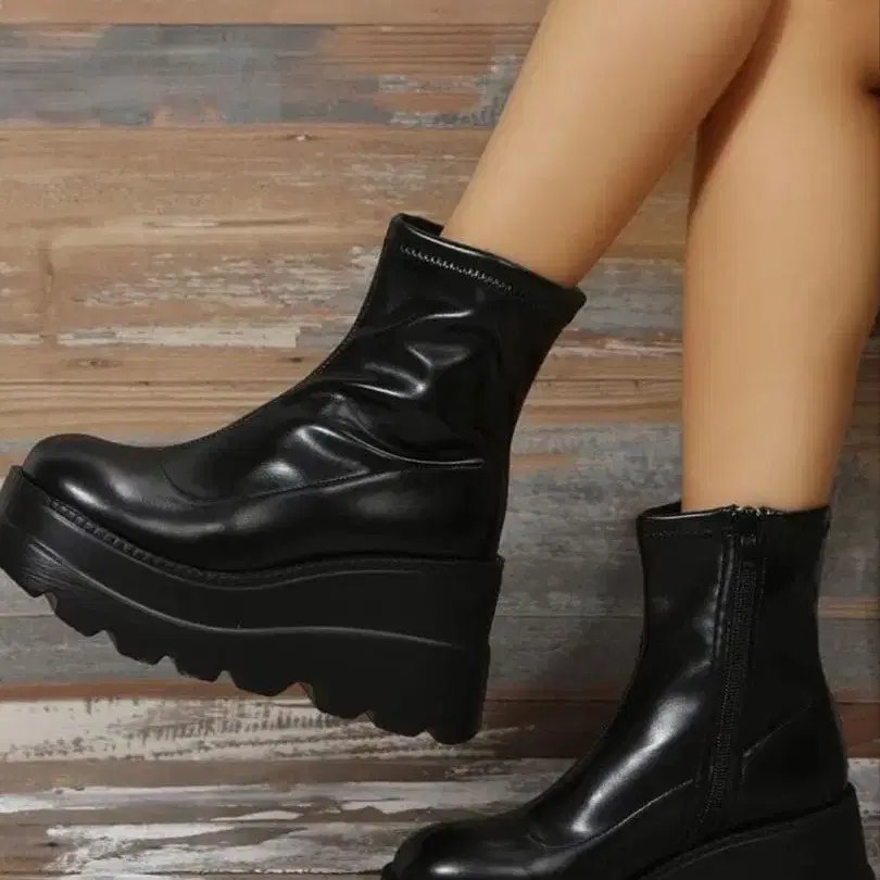블랙 합성 피혁 플랫폼 부츠