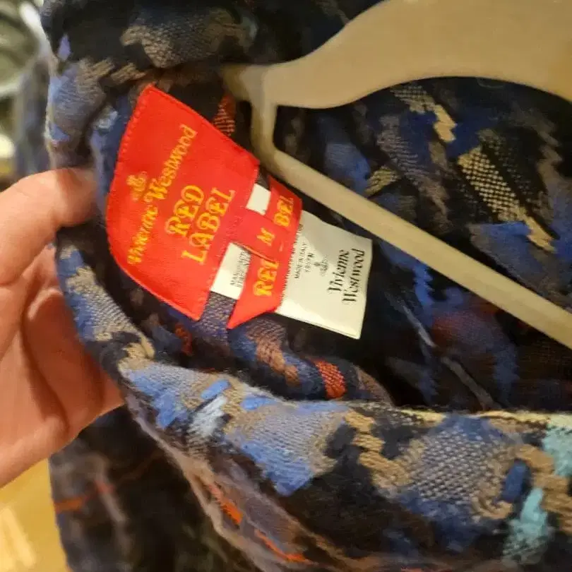 다색 체크 무늬가 특징인 M 사이즈 가디건. 아주 희귀한 판초!