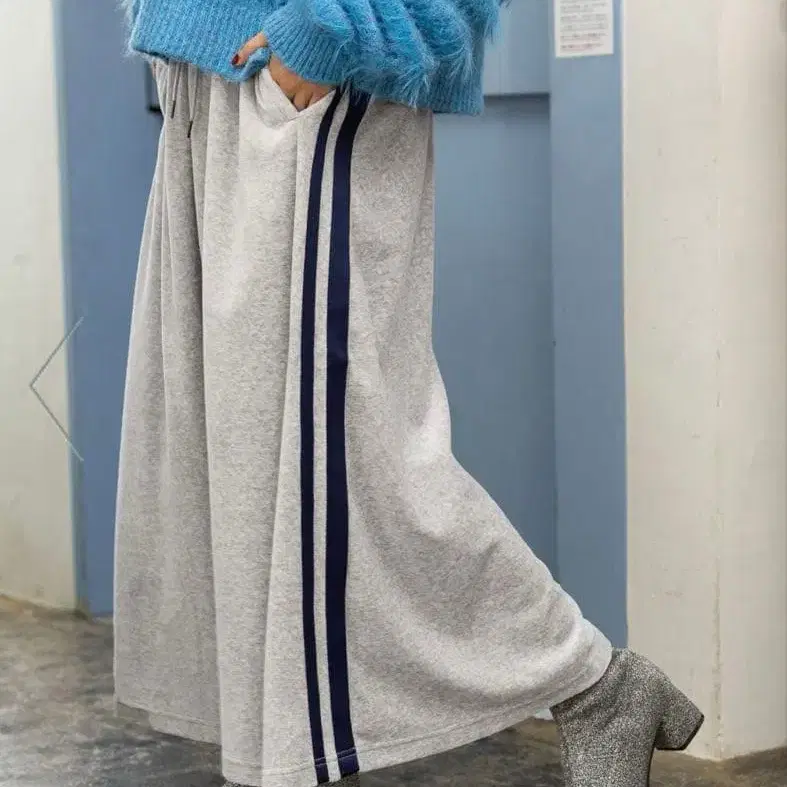 넉넉한 실루엣으로 전체적으로 릴랙스감이 있는 래빗 벨로아 라인 스커트.