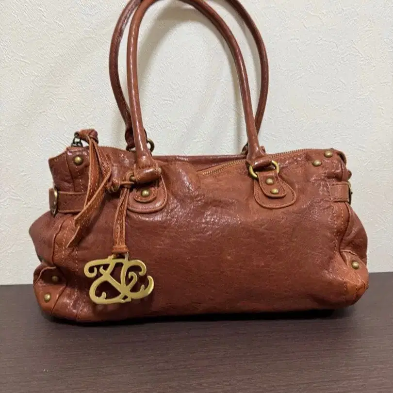 브라운 가죽 핸드백, 금장 장식과 로고 참 포함. - 색상: 브라운 - 소재: 가죽 - 디자인: 핸드백 - 특징: 금장 장식 포함, 지퍼 포켓 포함 - 장식: 로고 참 포함 - 사이즈: 가로 약 35cm, 세로 약 20cm, 바닥 약 15cm, 손잡이 높이 약 22cm 외부 지퍼 포켓 1개 오픈 포켓 1개 내부 지퍼 포켓 1개 오픈 포켓 2개 포켓이 많아 소지품 정리가 용이합니다. 수납력도 꽤 좋습니다. 중고품이므로 미세한 흠집은 있지만 깨끗한 상태입니다. 사진으로 확인 부탁드립니다. 방문해 주셔서 감사합니다.