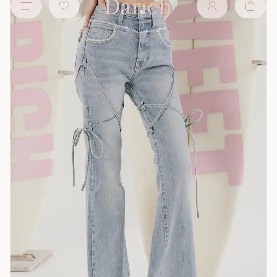 컷 아웃 리본 데님 팬츠